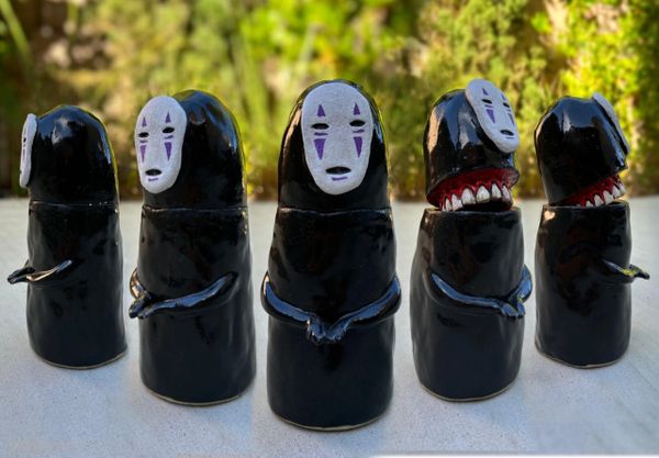 A lidded pot based on one of my favorite childhood movies spirited away. The pot is made to look like No-Face.