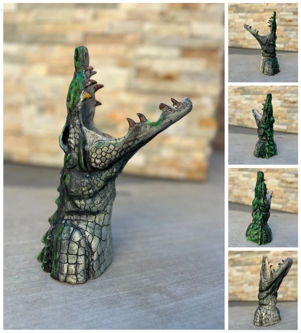 An alligator jumping out of the water (aka the surface the sculpture is placed on)