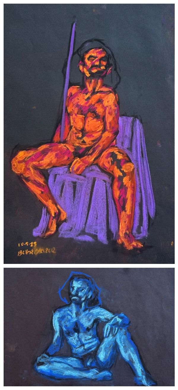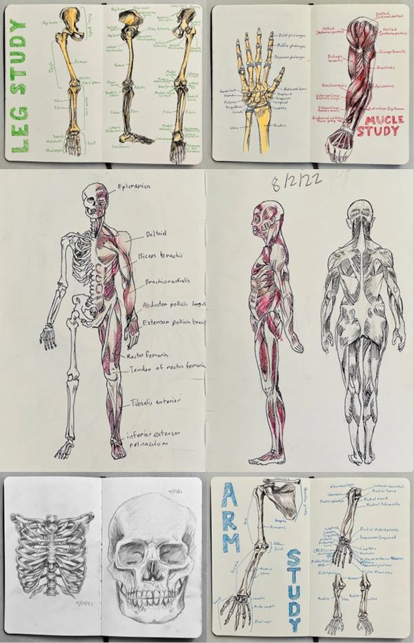 Sketchbook spread Beatle(8x12.5in), Theater(8x10in) & Houses(8x10in)